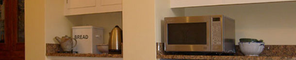 The day after the floor was finished, the granite worktop arrived. It was cut and installed by local company Stone Cladding International Masonry Limited. We chose 'Giallo Veneziano' for its warmth and interesting pattern, which coordinated with the flooring, wall and cupboard paints and wood stains. They also fitted the upstands, which was chosen in preference to tiles. Tiling would have been too busy a pattern next to the granite and would only have detracted from its character.
